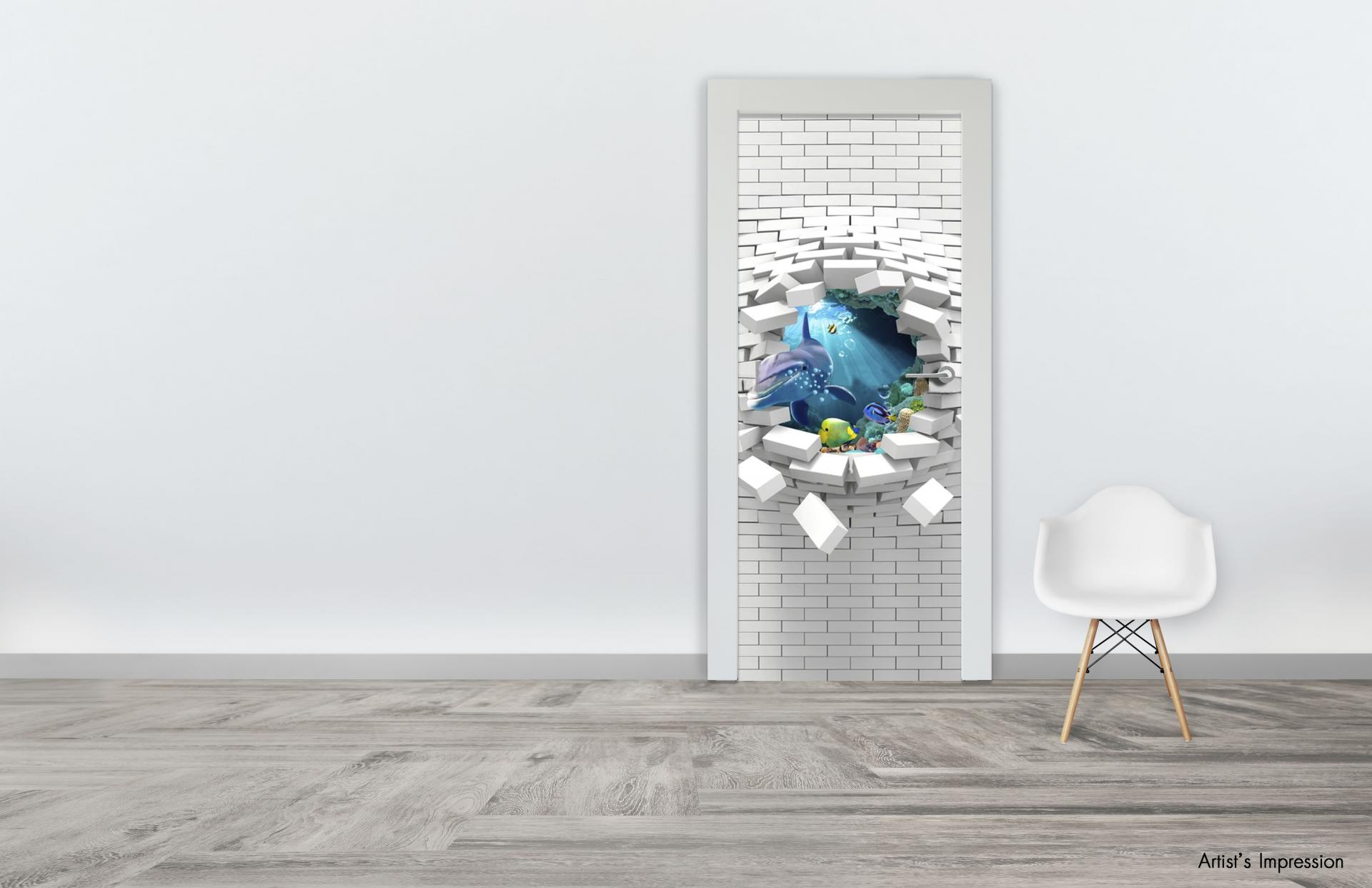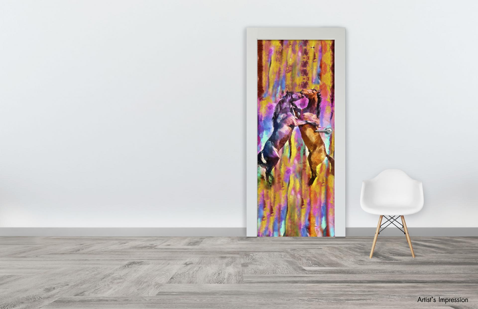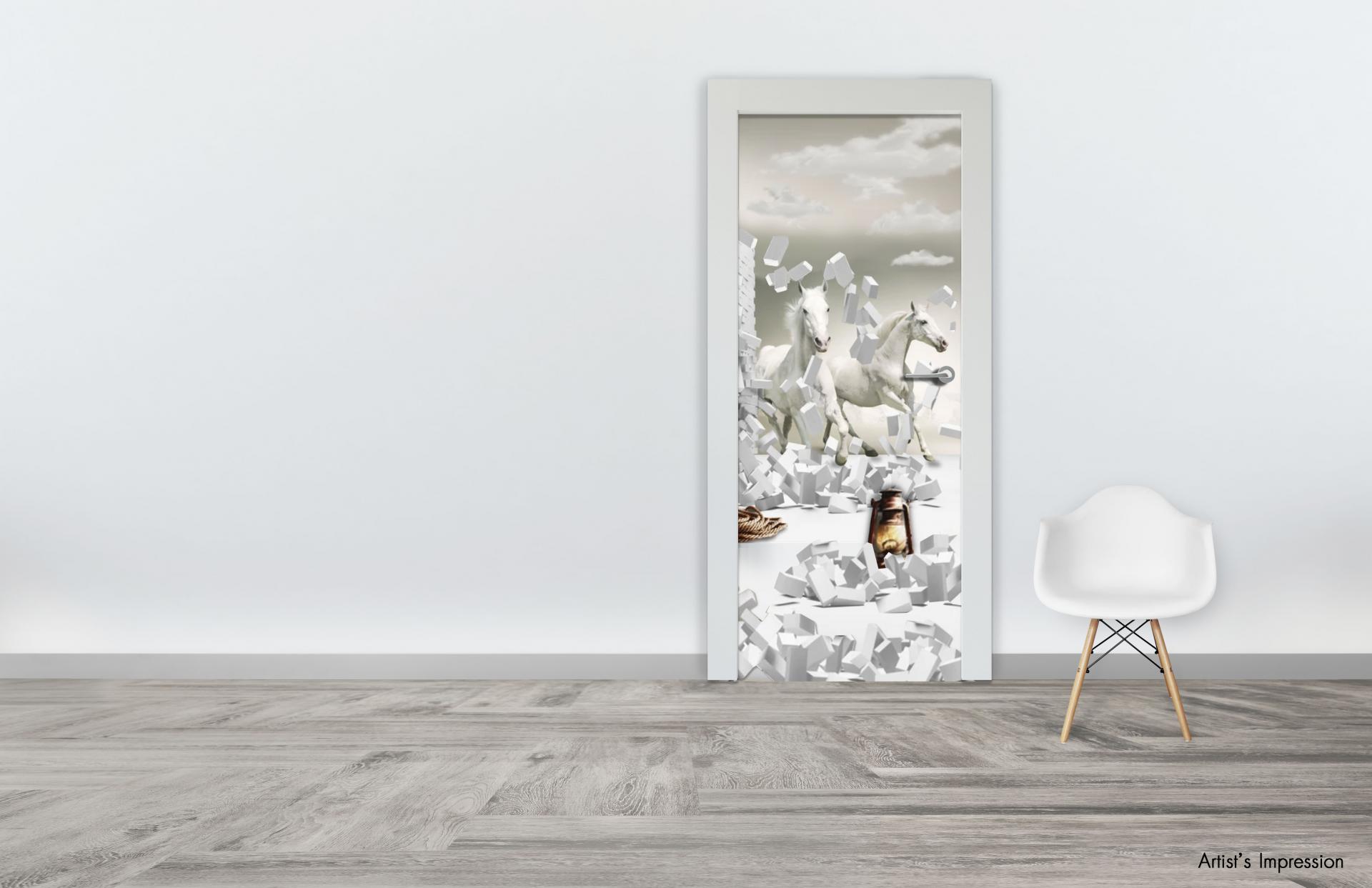 3D Illustration Of White Horse Coming Out From Broken Bricks