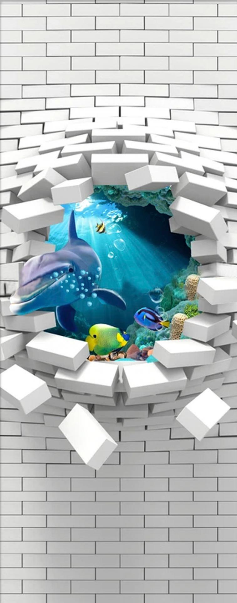 Underwater And Broken Brick Wall 3d