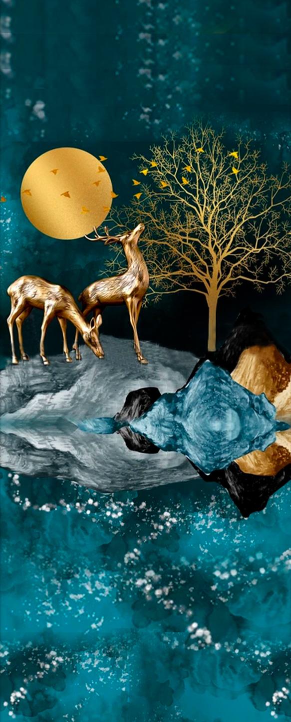 3d Illustration Of Golden Deer In The Mountain