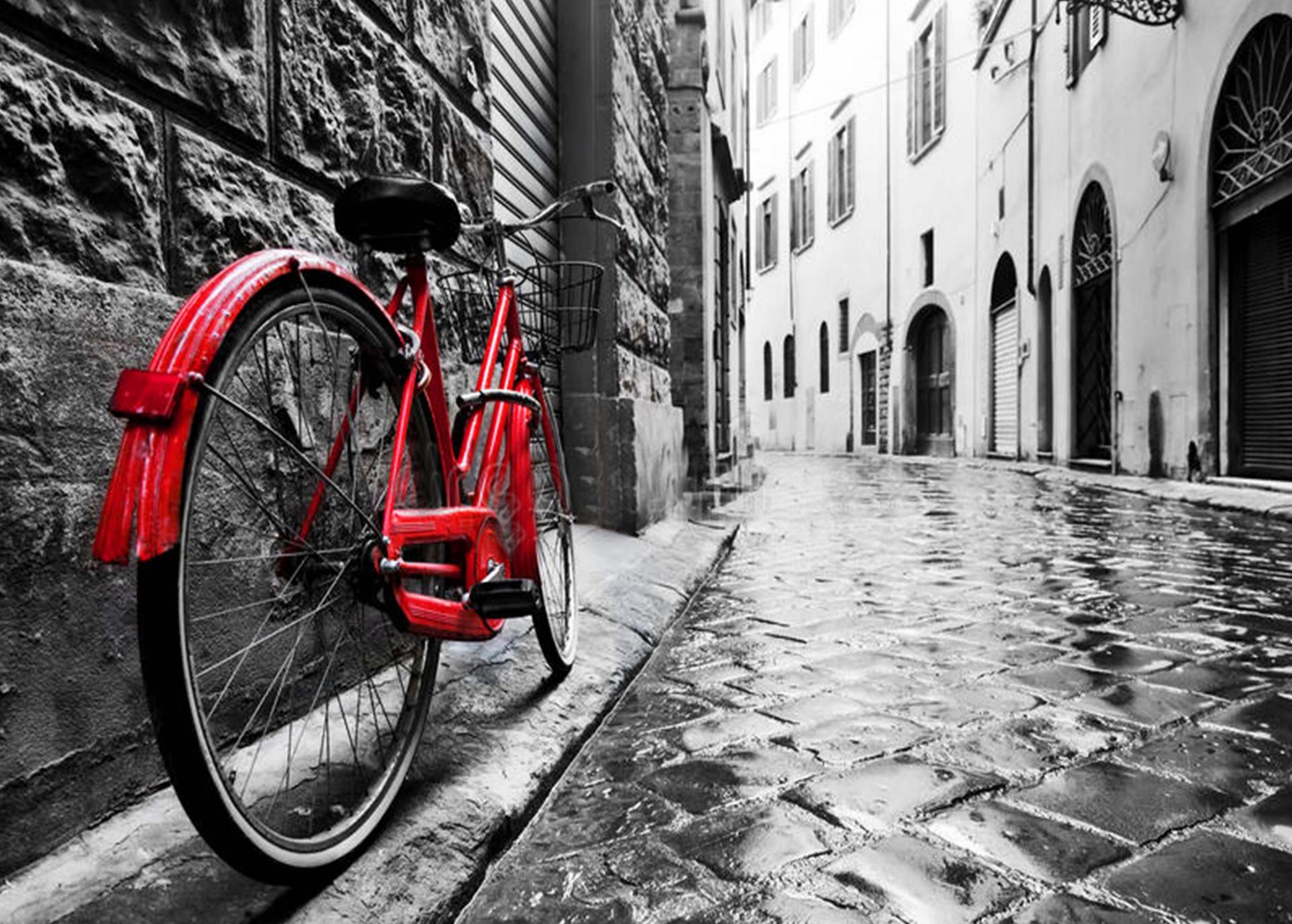Retro Vintage Red Bike On Cobblestone Street In The Old Town
