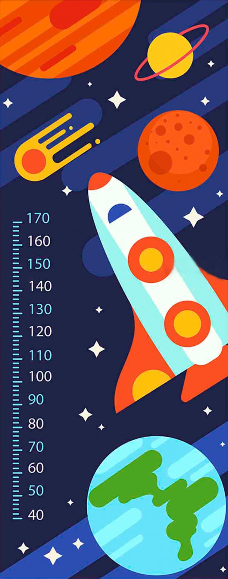 Cute Little Child Measuring Height Cartoon Ruler Background Wall