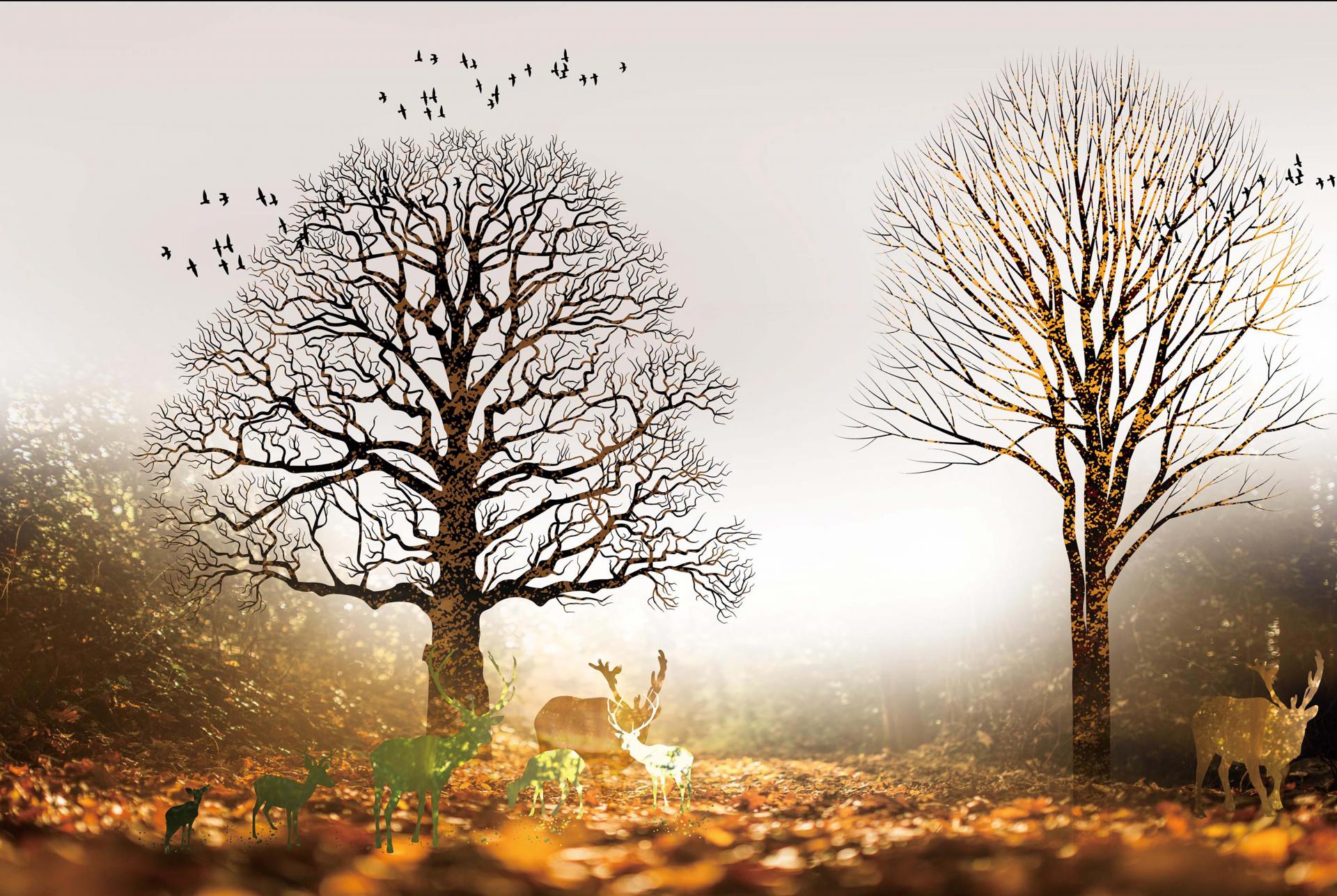 3d Mural Wallpaper With Gray Background Golden Rays